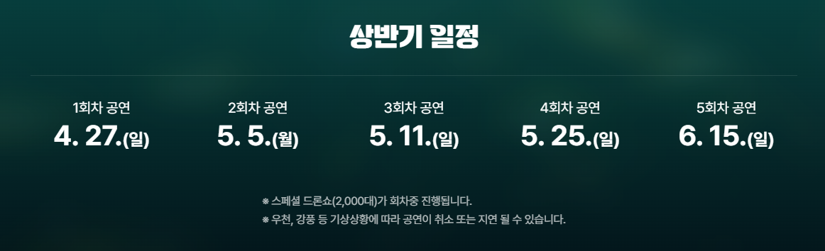 공연 시간: 19:30~20:30 (드론쇼 20:30~20:45)