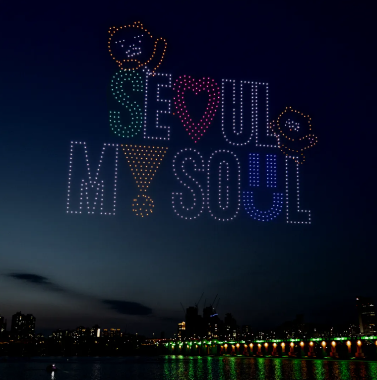 서울의 야경과 드론이 어우러져 만들어내는 감성 가득한 빛의 쇼! 2025년에도 한강의 밤하늘은 화려하게 물듭니다.